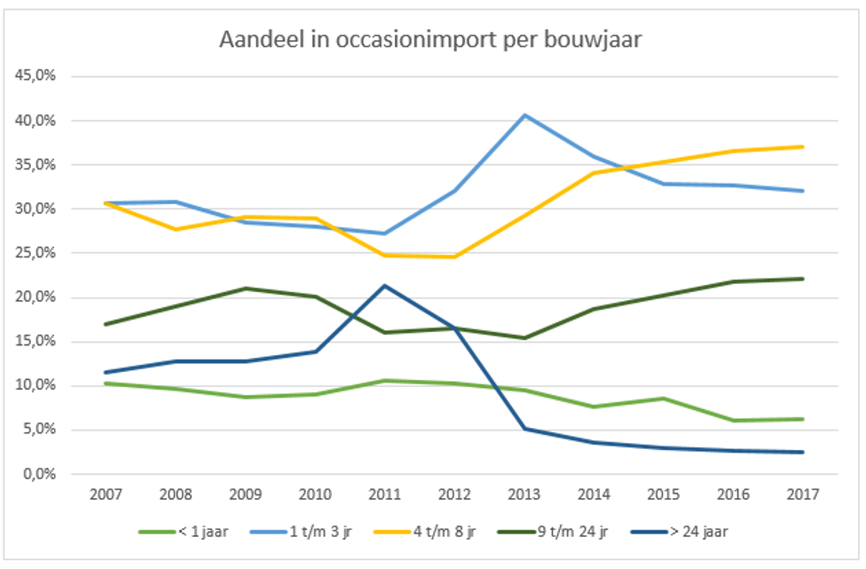 De aanhoudende groei in de import van tweedehands auto’s is een logisch gevolg van de lage aantallen nieuwe auto’s die het afgelopen decennium in Nederland werden verkocht. Waar eerder jaarlijks ongeveer 480.000 nieuwe personenauto’s de showrooms uitreden, ligt dat gemiddelde over de laatste tien jaar ruim 30.000 stuks lager op circa 447.000. Als gevolg van de economische crisis en door fiscale stimuleringen voor zakelijke rijders zijn in die jaren bovendien auto’s op de Nederlandse markt gekomen waar de particulier voor zijn tweedehands aankoop geen interesse in heeft. De belastingvoordelen van weleer op vele hybrides en diesels gelden immers niet (meer) voor de particulier; deze worden grotendeels met hoge kilometerstanden geëxporteerd en de grootste vraag op de binnenlandse occasionmarkt gaat uit naar compacte en middenklasse benzineauto’s met lage kilometerstanden. Door gebruikte auto’s uit andere Europese landen te importeren kan de Nederlandse autobranche aan de behoefte van de consument blijven voldoen.